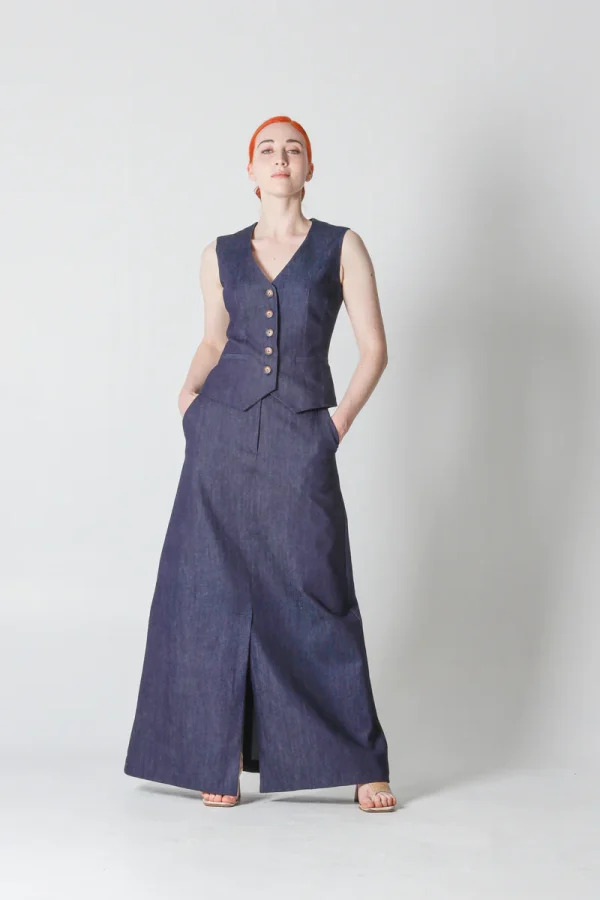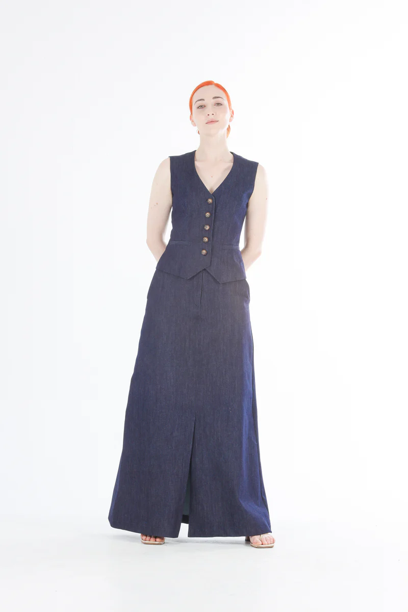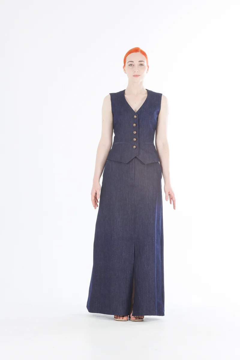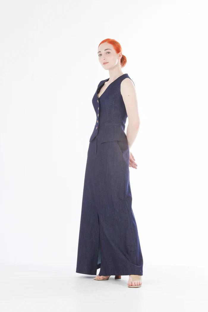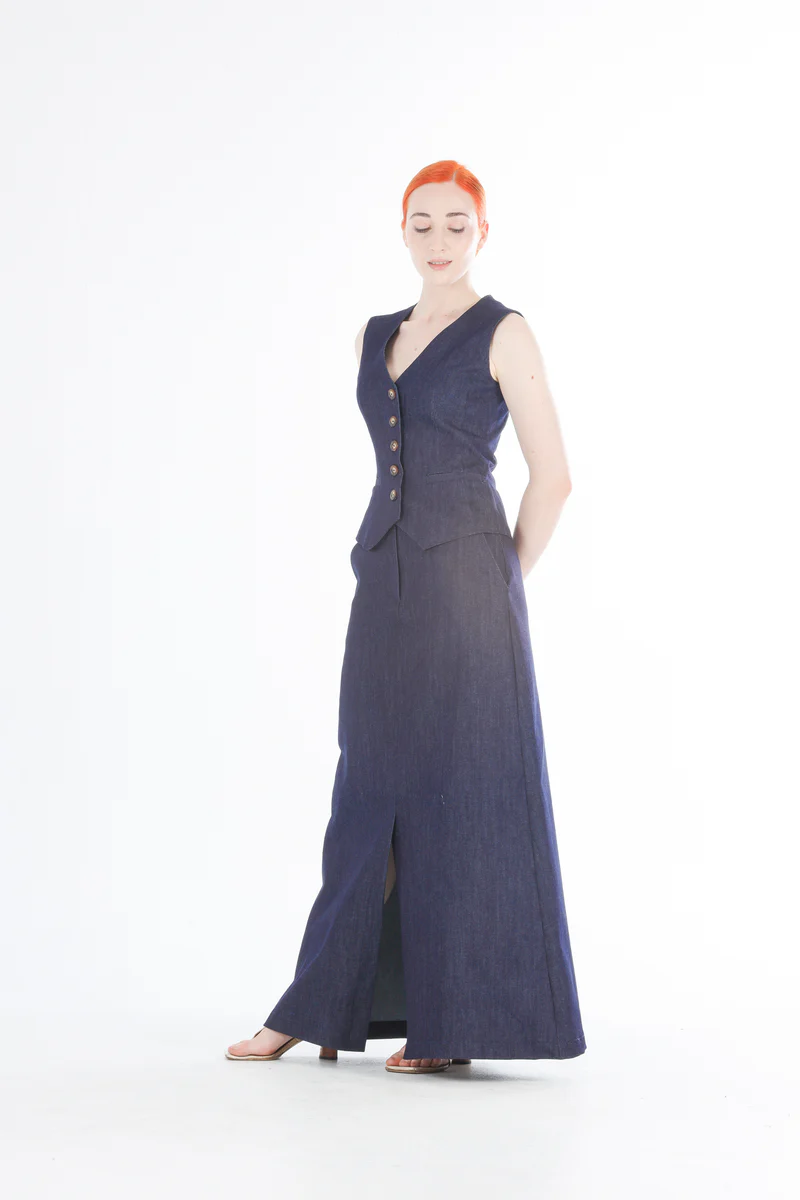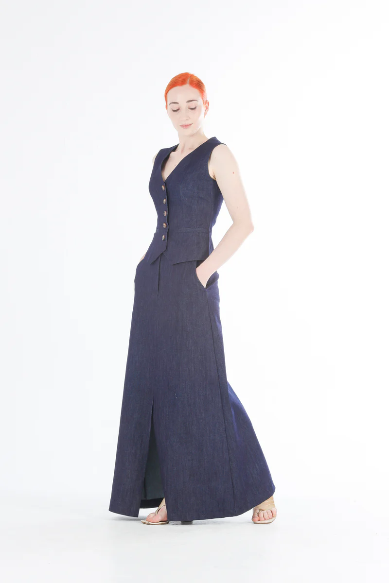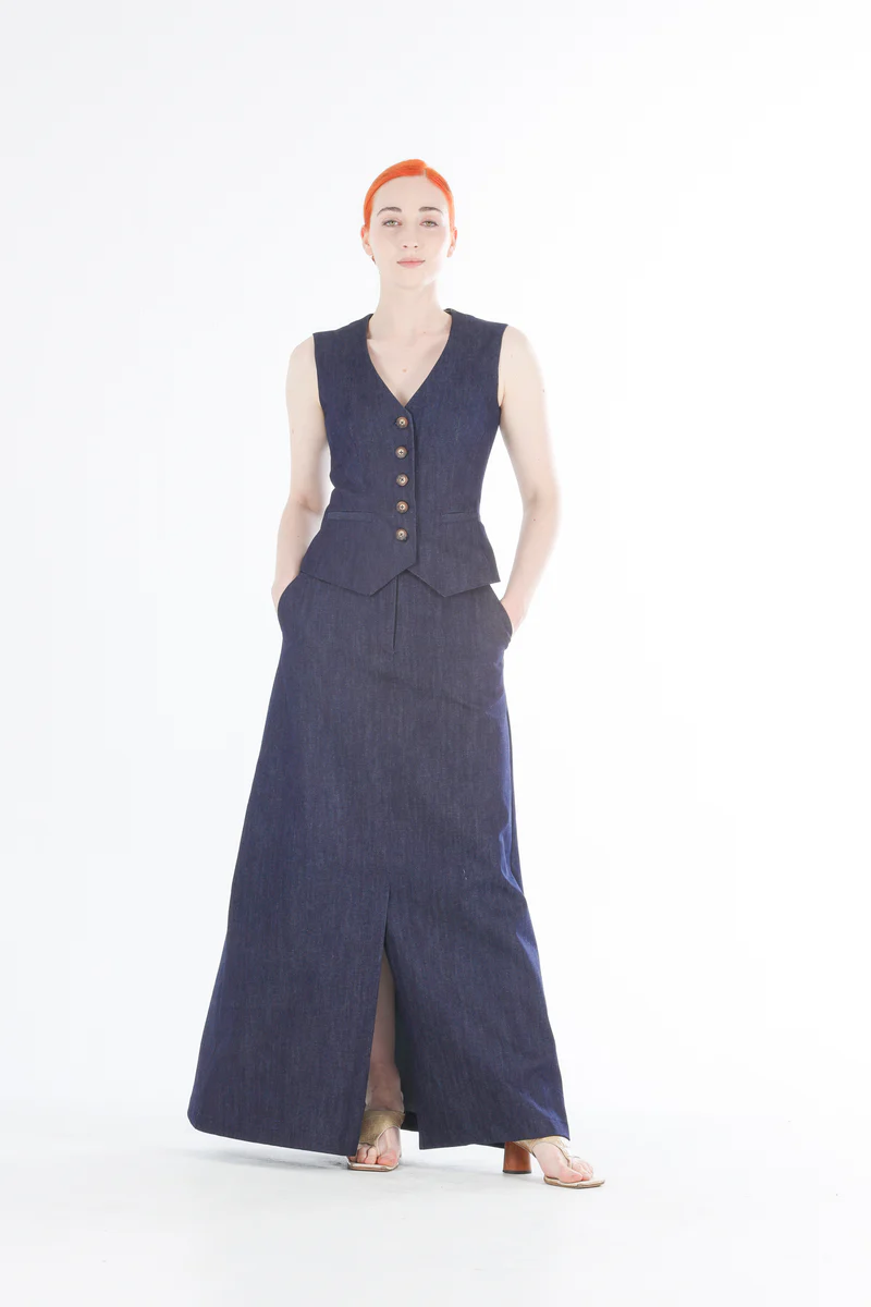Indigo denim vests are made in a denim fabric with just enough electricity to make them a flattering fit, medium weight.