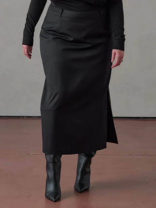 The Gaia midi twill wool skirt is our approach on contemporary tailoring. Crafted from premium wool fabric, featuring belt loops and side slit for ease of movement. The skirt is lined and is extremely versatile taking you from desk to dinner.