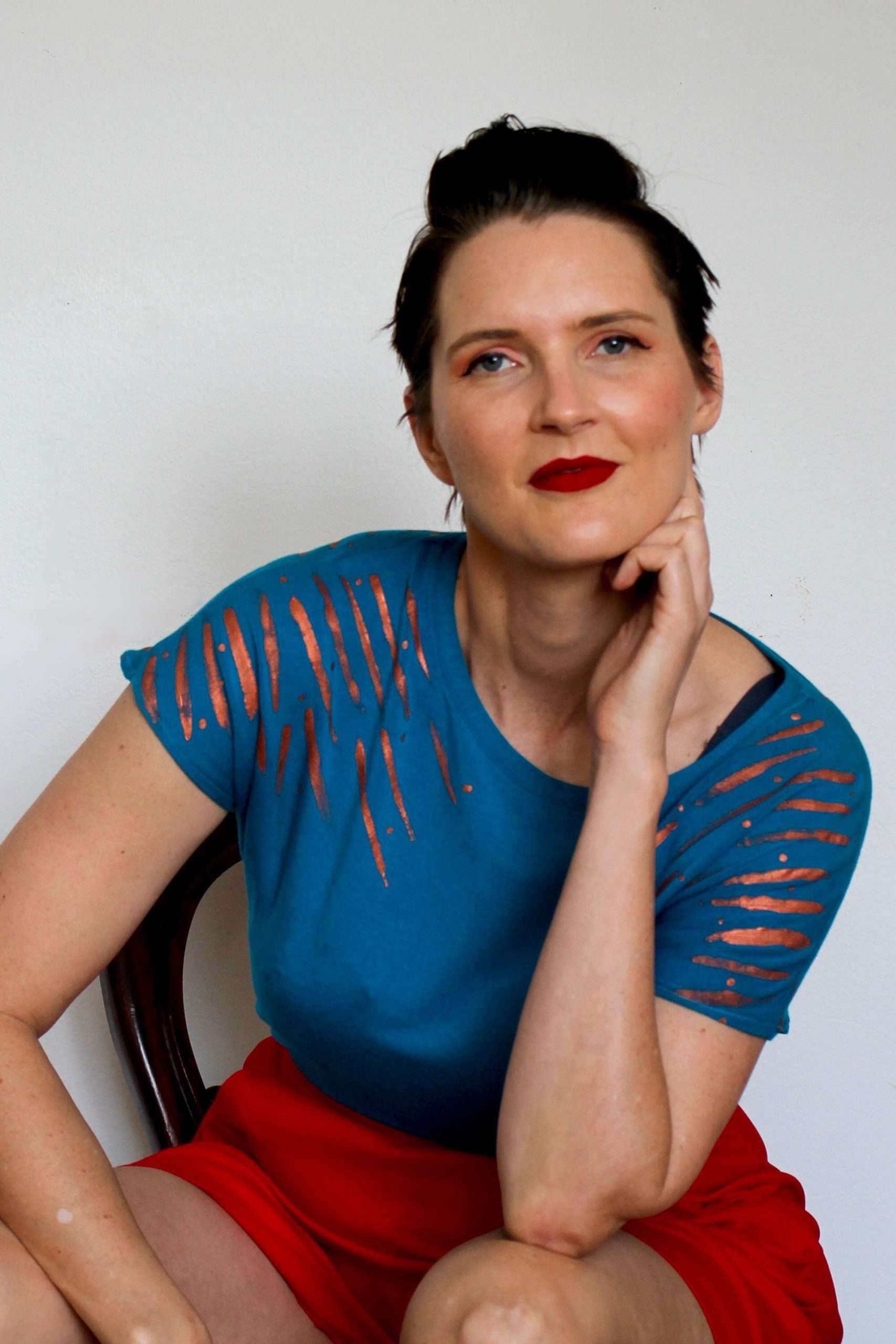 This women’s tee has been hand painted individually so each one is slightly different to the next. The bright jade blue colour contrasts the metallic rose gold painting beautifully. If you are looking for something unique and individual with a little bit of sophistication, look no further! Hand made in Sydney, Australia by your local ethical fashion designer.