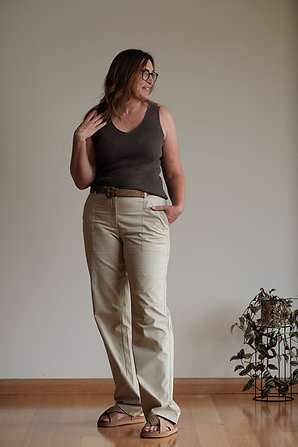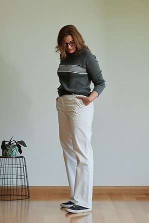 ‘Kim’ is fabulous! The fabric is like a soft cotton drill with a gentle sheen and slight stretch. The pockets are deep enough for a tallgirl to stick her whole hands in without her elbows winging out and they iron like a dreI have my eye on the white ones! I’m 181cm/6ft tall and a standard size 16. I have my eye on the vanilla coloured ones!