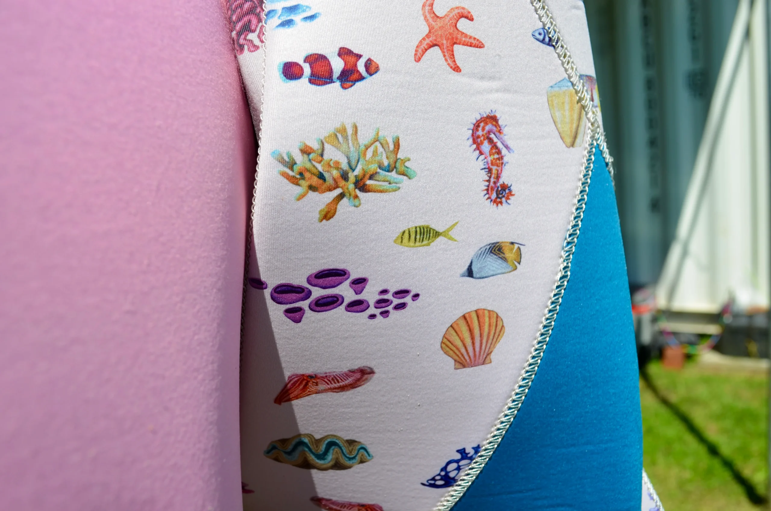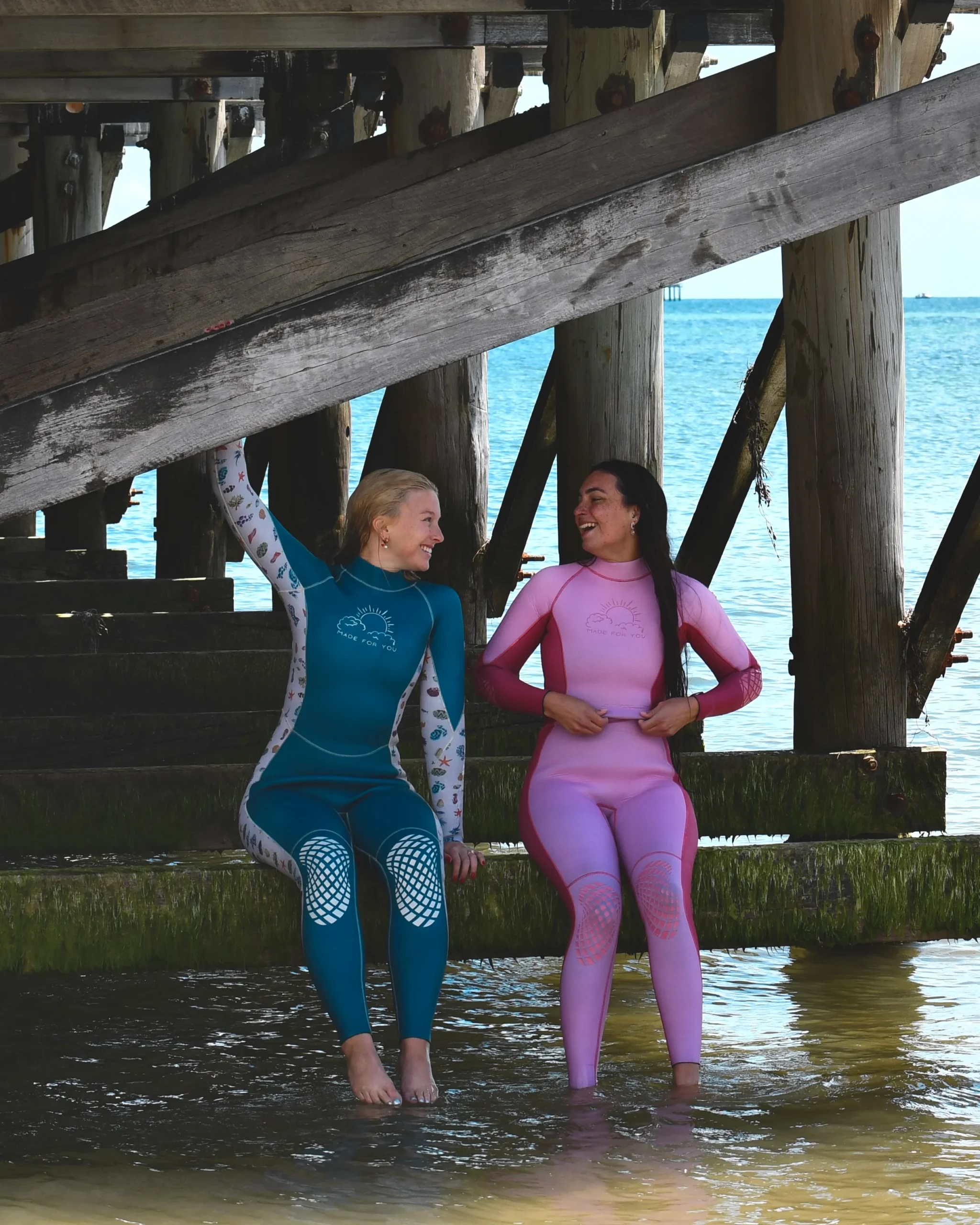 The collaboration on the teal suit has been over a year in the making; Divermon has created a print completely unique to our brand showcasing creatures of Australian reefs and 5% of the profits will go to the charity Seatrees. You can check out their work here: https://seatrees.org/