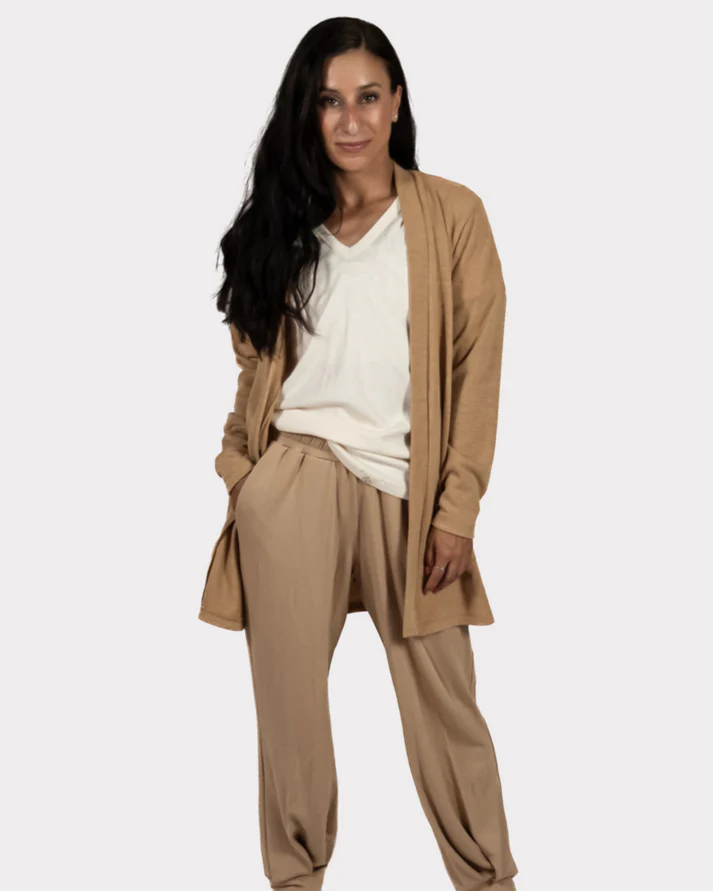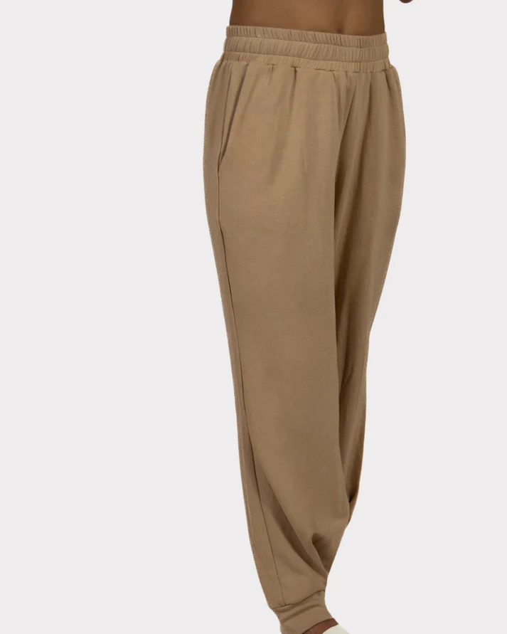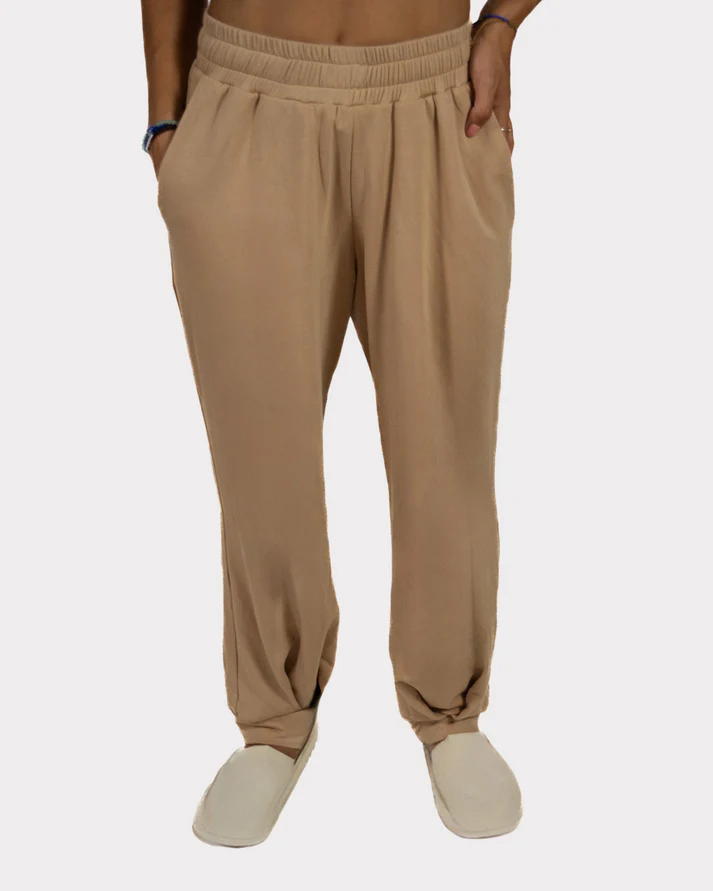 This light Tracksuit Pant is made from the most buttery soft bamboo fleece – making them the comfiest pair of pants. The stunning box pleat design detail just above the ankle, gives our tracksuit pants a very elevated look, more like dress slacks than trackies.