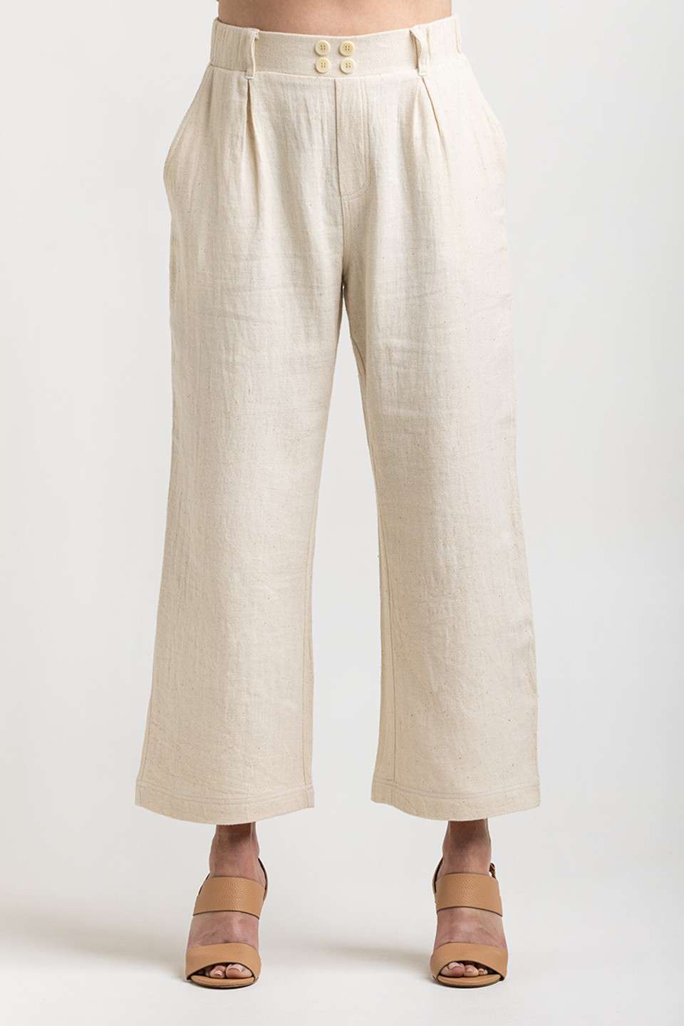 Regardless of the occasion, these white Wide Leg Dress Pants fashion an elegant and opulent appearance. Made from organic cotton that has been handwoven, the material is breathable and insulating making it the perfect option for hot, sunny days or a luxurious look in winter.
